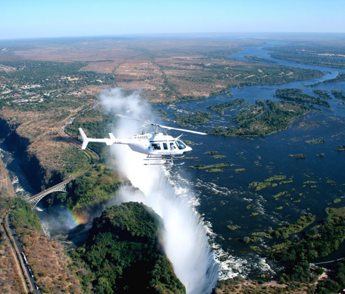 Helicopter Flight Over Victoria Falls—often called the Flight of Angels—provides breathtaking aerial perspectives of the falls, river, and surrounding landscapes. This is a rare opprtunity to get a view that very few can boast about – the aerial rainbows breaking through the mis is a sight to behold.